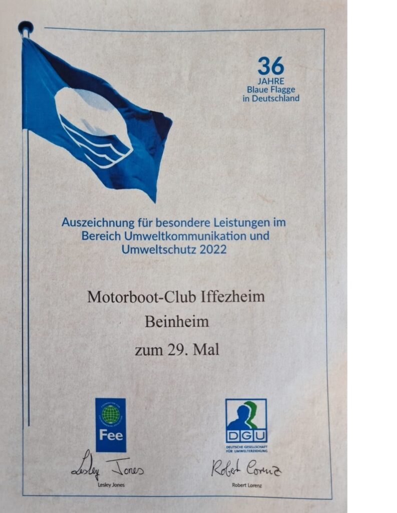 Seit 29 Jahren wird der MBC-Iffezheim regelmäßig mit der Blauen Flagge ausgezeichnet.